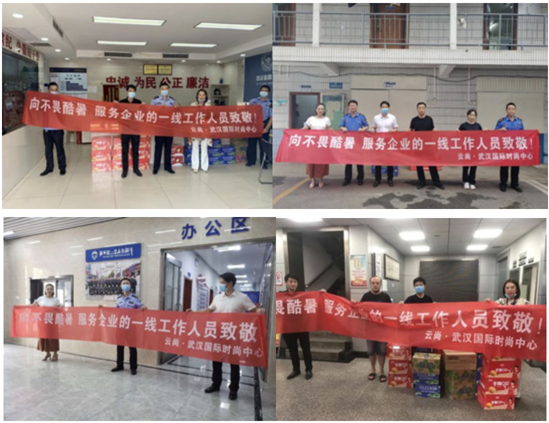 8月7日,云尚产业发展集团工会委员会曾开展夏送清凉活动,向坚守一线的合作单位员工赠送消暑物资,此次慰问服务企业的一线工作人员,感谢他们的辛勤付出,是致敬企业的守护者的又一举动。从新出发、尚无止境!有你们的守护,云尚·武汉国际时尚中心将会更美!